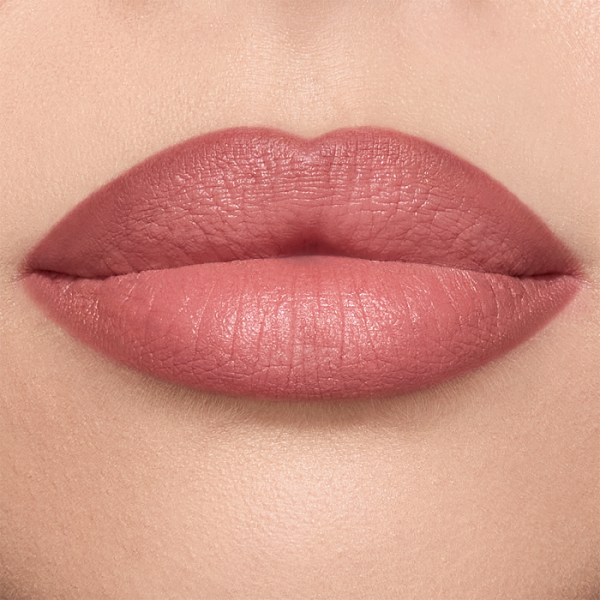 پوشش مات و جذاب: رنگ ملایم و طبیعی “Pillow Talk” به لبها جلوهای شیک و دلانگیز میبخشد.